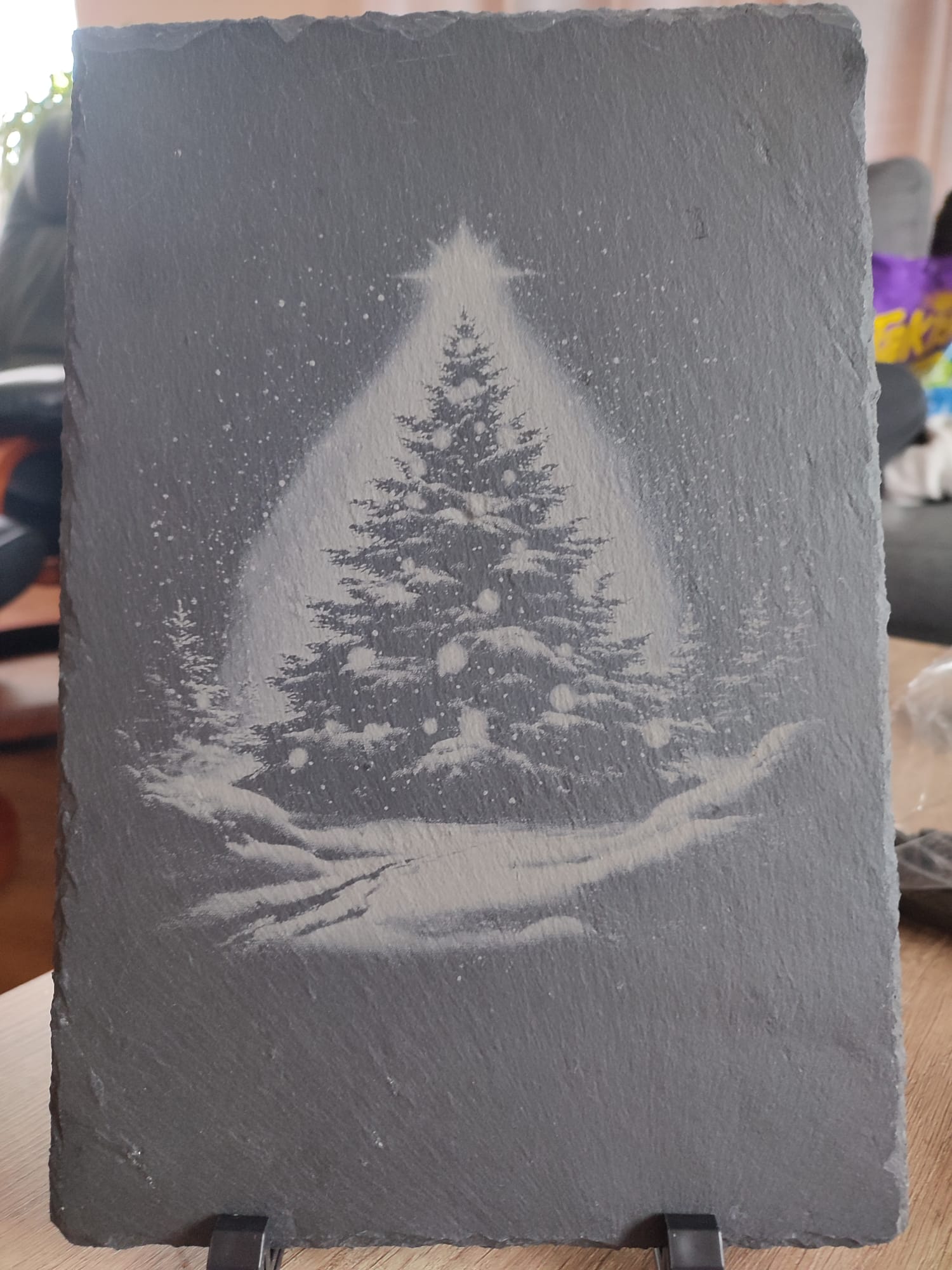 Magnifique ardoise avec gravure sapin de Noel.